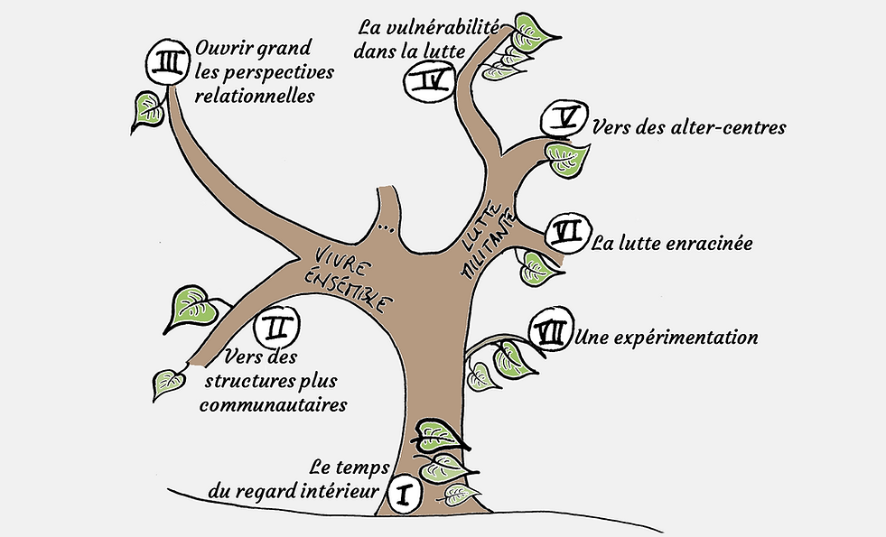 L'intention est de questionner la pertinence des façons d’être et de lutter actuelles, au regard des enjeux du temps présent, et d'ouvrir une réflexion sur la recherche d’autres attitudes, qui pourraient mieux s’ajuster avec l’époque (c'est quand même pas rien, notre époque !) et avec nos aspirations humaines (et spirituelles (et évangéliques)) profondes.